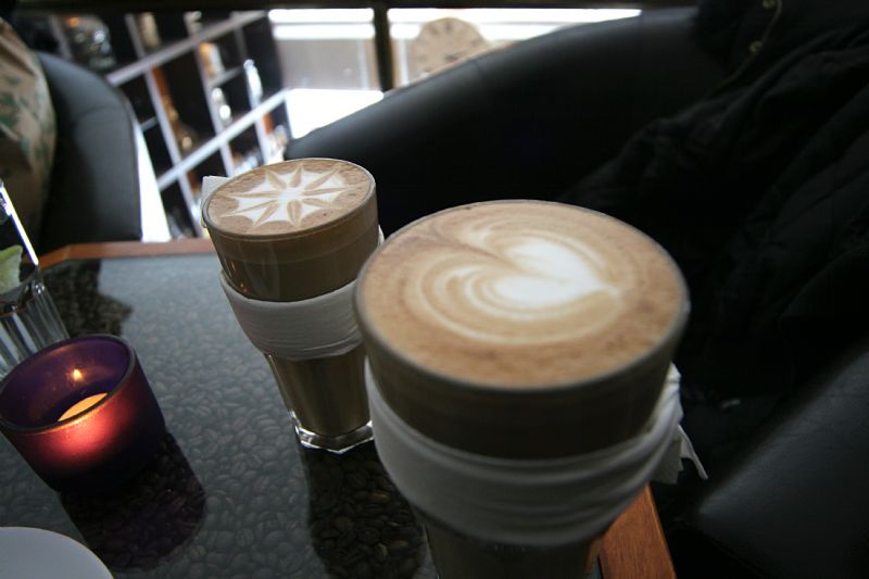 Jag, Malin och Anna-Stina fikar på Bara Vara. Hur de orkar göra världens snyggaste kaffe varje gång har jag aldrig fattat.